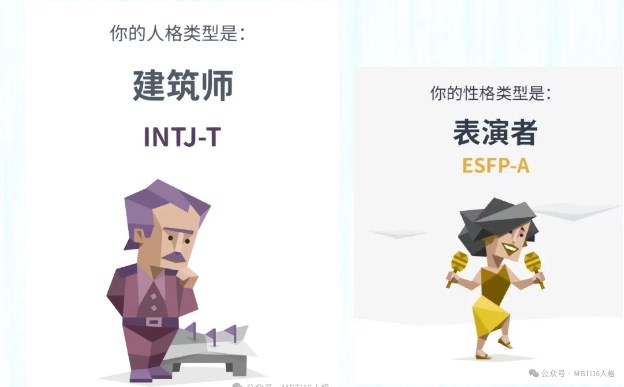 INTJ,被称为“建筑师”,以其内向、直觉、思考和判断的特点而闻名,他们通常是理性、有远见且注重逻辑的规划者。而ESFP, 被称为“表演者”,以其外向、感觉、情感和知觉的特点而著称,他们通常是热情、活泼且享受当下的社交者。